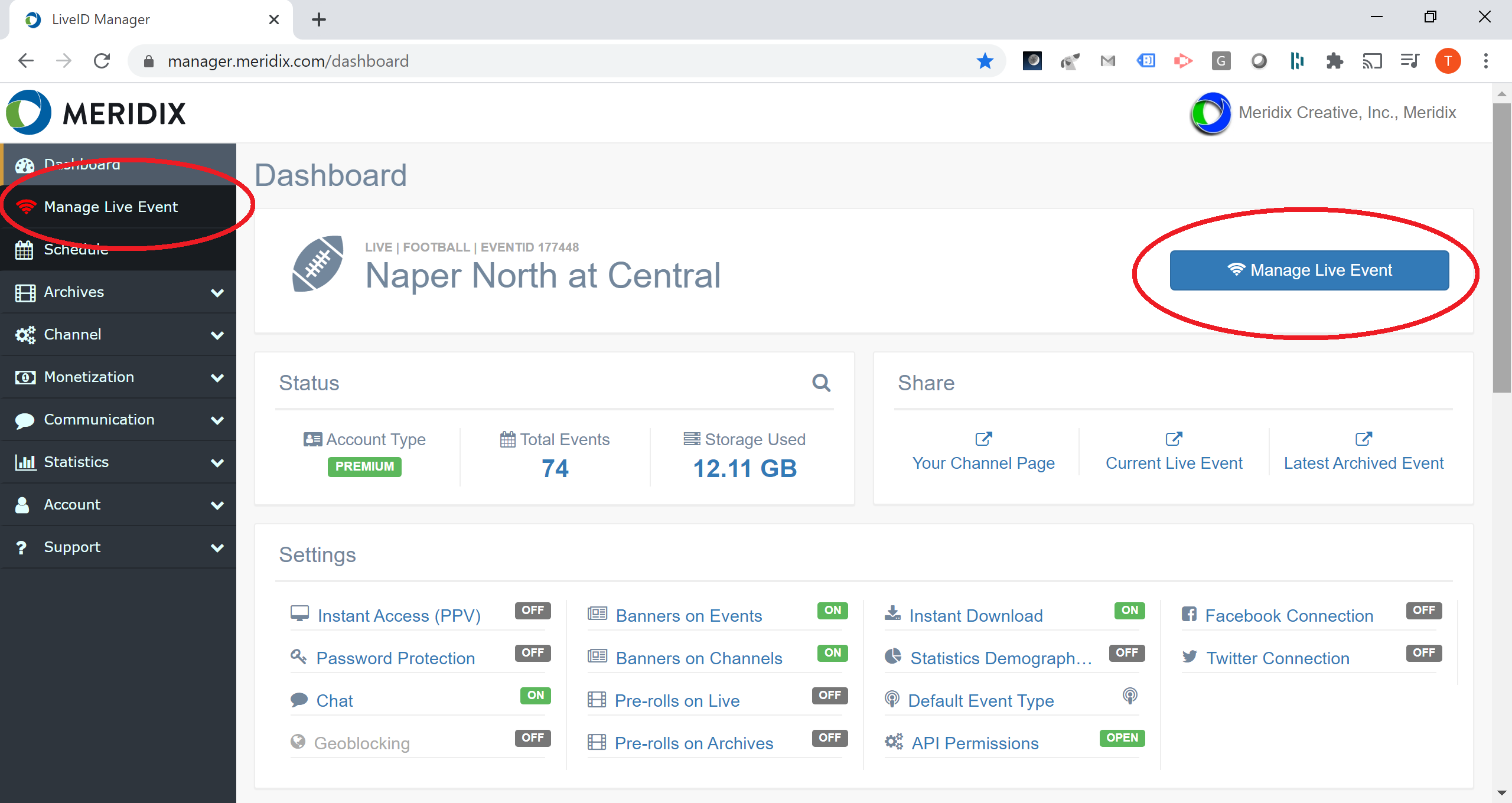 1. In the LiveID Manager main menu (or using the button at the top of the dashboard) click on "Manage Live Event".