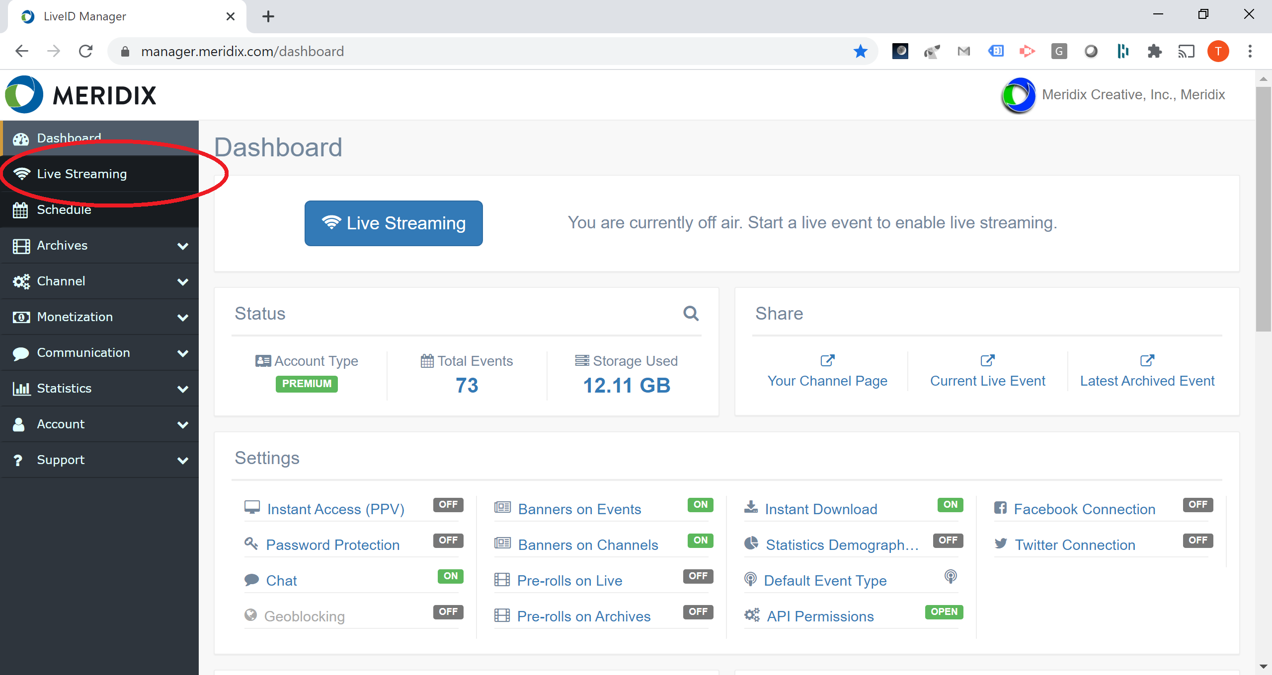 7. At the exact time you scheduled for, our platform will automatically take the event to live status. Once an event is in live status, you can begin pushing your live stream to your channel using the encoder of your choice (mobile app, desktop software, dedicated hardware, etc). If you try to push a stream to your channel while you do not have a live event running, the connection will be rejected.
